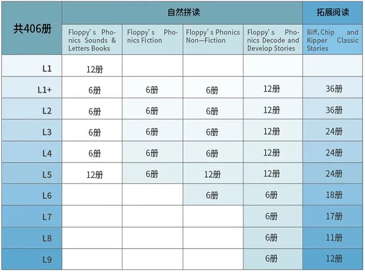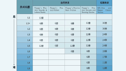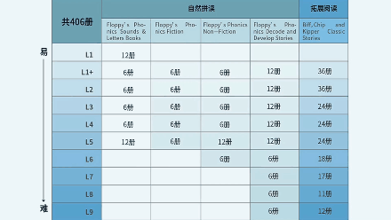 1到9级加上无字书有10个级别共406本书,启蒙阶段的孩子看这套学校版就足够用了。