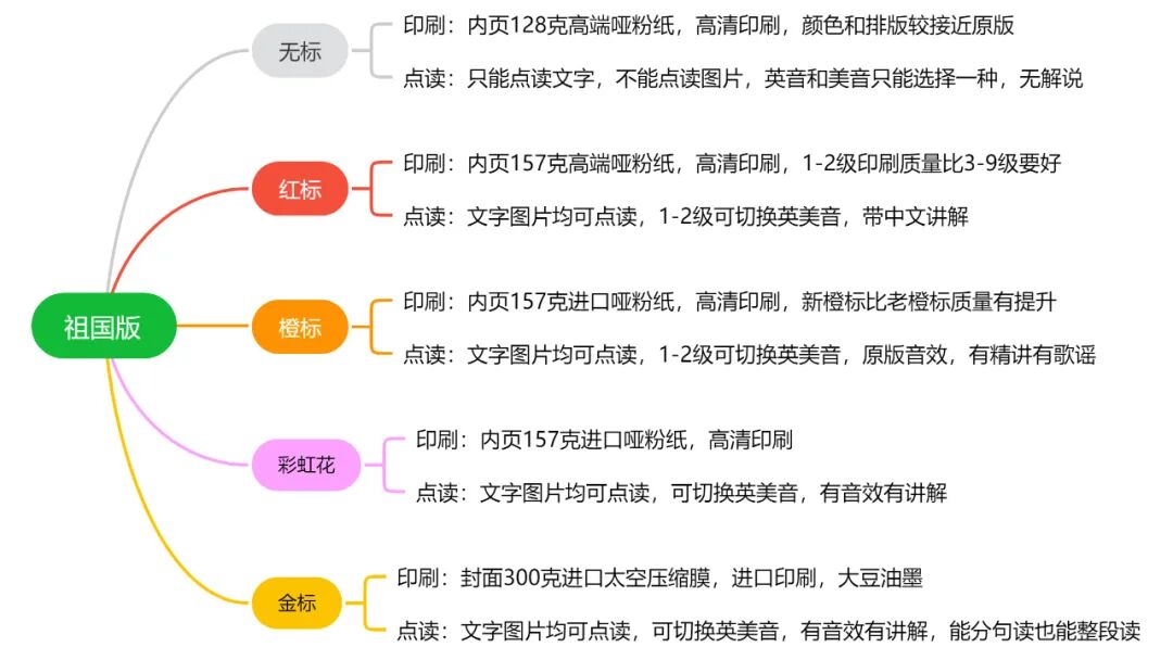 你可以简单的理解为红标厂印刷的牛津树或者橙标厂印刷的牛津树,内容基本都是一样的,主要的差别在于印刷的纸张和色彩,以及点读功能和售价。